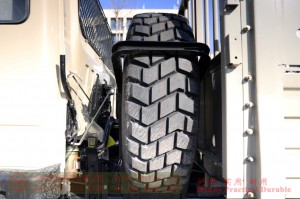 Flathead row and a half 6×6 off-road vehicle, Cummins 190 hp supercharged intercooled diesel engine, 12.5R20 wider off-road tires, 6-speed mechanical transmission, front and rear axle drive, anti-aircraft lamps, sub-fuel tanks, oil drums, water buckets, toolboxes, and other military add-ons, and with shed poles and tarpaulin, (with optional winch).